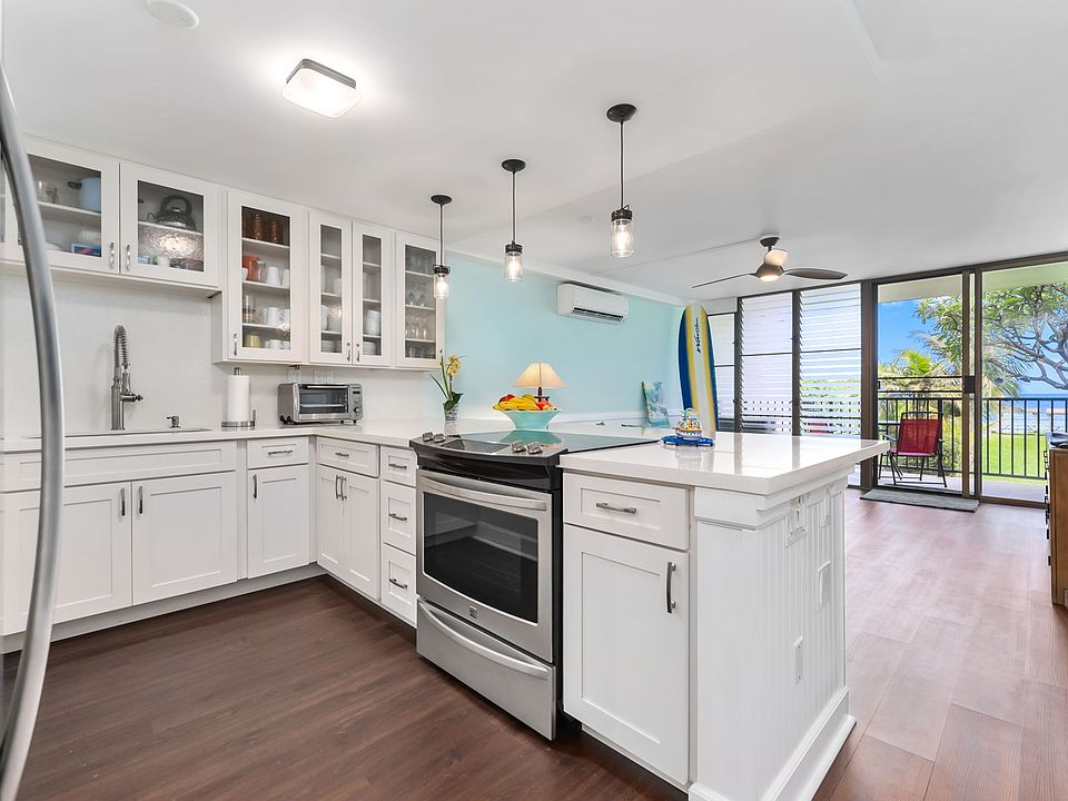 Escape to paradise in this stunning, FULLY FURNISHED, 1-bedroom, 2-bathroom rental unit at Haleiwa Surf. Located in the heart of Haleiwa. This tastefully renovated retreat offers the ultimate island living experience and views galore right from your unit. Step inside and be greeted by an inviting layout, flooded with natural light and adorned with modern, beach-themed furnishings. Fully furnished with kitchenware, stainless steel appliances, queen size bed, linens, couches, chairs, towels and much more. Bring your toothbrush and move right in! Enjoy your meals indoors or take them outside to the private lanai, where you can savor your food while taking in the breathtaking views of the surrounding tropical landscape and the breathtaking ocean! All utilities EXCEPT electricity included in rent The real highlight of this rental is its proximity to the beach. Just steps away from the sand and surf, you'll have easy access to world-class waves and endless opportunities for water sports and beachside relaxation. Spend your days swimming, surfing, or simply soaking up the sun as you watch the waves roll in. Just a quick walk, bike, or drive to Haleiwa town, shopping, restaurants, bus lines and more. With its unbeatable location, stylish accommodations, and endless amenities, this Haleiwa Surf rental is the perfect choice for your next home in Hawaii. All utilities EXCEPT electricity included in rent. No Smoking in unit. No Pets. $30 application fee per adult.