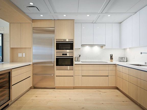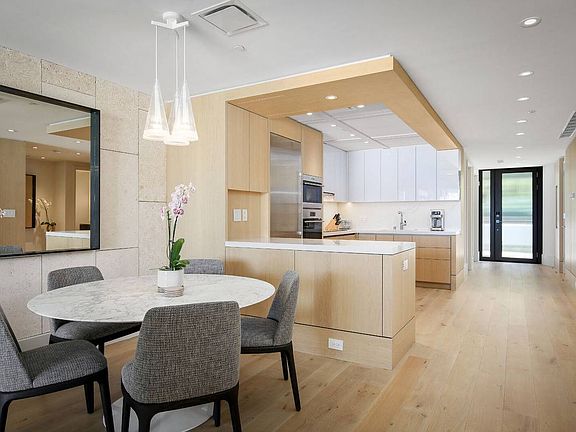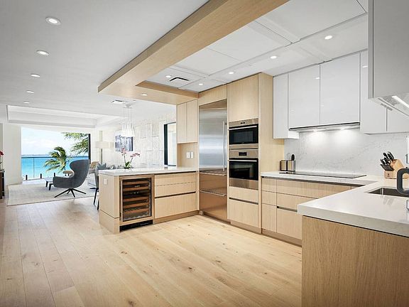 - Open kitchen with Quartz countertops, high-end appliances such as SubZeros, Wolf and Miele, high-end cabinetry