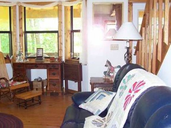 Move in ready vacation cabin with seasonal mountain views! Easy access and located less than one hours drive to three states! Home features an open floor plan with a cathedral ceiling in main living area. Second bedroom is loft with its own bathroom and large closet. Recent updates include new light and bathroom fixtures, ceiling fans, and a 13 seer AC compressor. Hand crafted pinewoods cabinets and a lower level covered deck added in 2010. Freshly painted outside as well as new paint in bedrooms and bathrooms. Lawn service is paid thru end of year and full propane tank goes with house. OWNER HAS PRICED THIS ONE TO MOVE QUICKLY!
