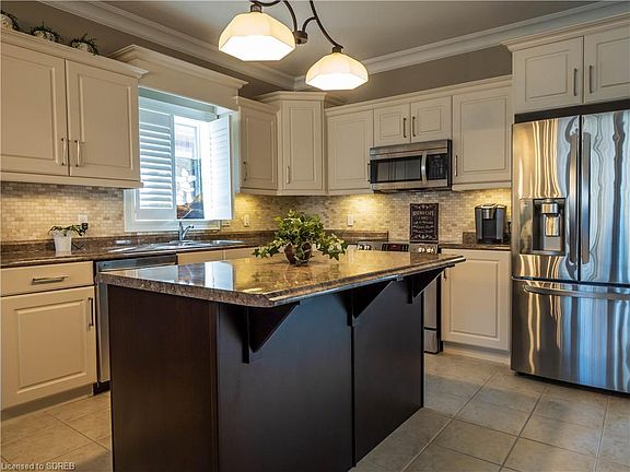 Desirable home nestled on a quiet street in an appealing neighbourhood in Port Dover. If this is what you are looking for and if attention to detail is important to you, consider viewing this beautiful home right away! Built in 2013 this 1628 sq. ft. home has an open concept great room, 9 ft. ceilings throughout, gas fireplace and a spectacular wall of windows and sliding doors with transoms making a statement as you walk in. The windows offer an view of back deck and yard. The white custom kitchen cabinets are staggered heights to add interest and appeal and it has a large island with eating bar. A generous dining room welcomes your guests and there is plenty of room for a buffet, table, and chairs. Tile flows from the entrance, kitchen and dining area leading you to hardwood in the great room. The main floor laundry and two full baths have tile floors. The entrance, kitchen, dining room and great room are finished with crown mouldings throughout. There are three spacious bedrooms on the main floor including the primary bedroom. The primary bath has a glass walk in shower, double sink and the main floor bath is 4 pc. The double garage enters to main floor laundry room. The unfinished basement is ready for you to apply your own touches. The recreation room was built with a large steel beam to eliminate support posts giving you a potential rec room space of 25 ft. 10 inches X 21 ft. 7 inches. There is also space for another bedroom or home office, a roughed in bath and plenty of storage space with lots of shelving. This home will not disappoint the discerning Buyer. Make this a must to see!