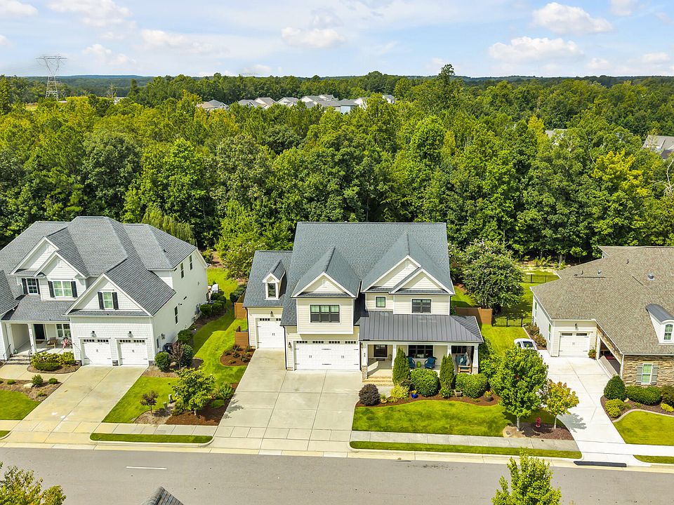 Discover this stunning custom luxury home with a THREE CAR GARAGE in the highly sought-after Briar Chapel community! Nestled on a rare CUL-DE-SAC lot that backs to serene woods, this Homes by Dickerson Riverwalk plan offers the perfect blend of privacy, space, and style. Inside, the open-concept layout features a MAIN-LEVEL BEDROOM with full bath (including a steam shower!), a spacious family room, dedicated office, and a convenient drop zone off the 3-car garage. The gourmet kitchen is a chef's delight, complete with granite countertops, a large island, and a butler's pantry. Step outside to the expansive screened porch and patio overlooking the fenced backyard and wooded buffer. Exterior of home is wired for a hot tub, so you can transform your outdoor space into a relaxing retreat perfect for entertaining or unwinding after a long day. Upstairs, the luxurious owner's suite is a true retreat with a spa-like bath (soaking tub, walk-in shower, and dual walk-in closets). Three additional bedrooms and a versatile bonus room complete the second floor. The third level offers even more flexibility with a full bath and space ideal for a sixth bedroom, game room, or home office. Home has hardwood and cork flooring throughout! Car enthusiasts and hobbyists will appreciate the rare 3-CAR GARAGE, including one oversized bay with a 10' door designed for a boat or larger vehicle. Also wired for an EV charger. Enjoy Briar Chapel's award-winning lifestyle - resort-style amenities, pool, tennis courts, trails, and parks, all just a short walk away. Voted ''Best Neighborhood in Chapel Hill'' by Chapel Hill Magazine for 9 consecutive years, Briar Chapel is eco-conscious, thoughtfully planned, and perfectly located just minutes to UNC, Duke, RTP, RDU, and Jordan Lake. This one-of-a-kind home truly has it all - don't miss it!