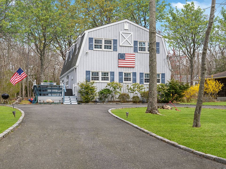 Rental Registration #: RO240444 Barn Style Home By the Beach[[Rental Registration # Pending]] Sweeping sunsets will captivate you from this lovely home nestled in the Waterfront community of "Bay View Oaks" Situated just two houses from the Bay Beach overlooking Little Peconic Bay. From here you wont miss a fabulous west facing sunset every night. This home features 5 bedrooms and two baths. Main level opens up to a large living/ dining area and Kitchen with great Bar and stools. The home has been updated with all new bedding and some new furnishings and has been perfectly painted with a soothing Beachy color palette for that Hampton's feeling. Main level also features an ensuite Primary with Queen size Bed. Also on this level is a gorgeous living room with exposed beams/ fireplace and comfy couches with a Smart TV. Dining room is adjacent to the living room and has two large glass sliding doors leading out to the expansive decking and back yard. Upper level features 4 guest bedrooms all generous in space with large closets, lots light with two of the bedrooms including a King size bed, one including a Queen and one guest bedroom with two twin beds. 3 of the bedrooms on the upper level feature flatscreen TV's. Also on this level is a full bath. The house is a barn style home and is just beautiful. You can enjoy on site Kayaks, Bicycles including a bicycle made for two and Blow up tubes for floating and relaxing in the Bay...the large backyard has ample room for entertaining and has a nice relaxing hammock. This listing is fully equipped for you to enjoy your Summer on the Beach that you can access in a one minute stroll just across the street. Stroll home from a long day at the beach, and enjoy a family BBQ with the large outdoor Gas Grill and the gorgeous wrap around decking with a large table and chairs for dining and an umbrella attached. After dinner move to a more relaxing area of the deck with large comfortable deck furniture with cushions, outdoor lighting and a television. Put your feet up and enjoy a nice glass of wine with your family and friends. This listing truly has it all. Kitchen is fully stocked and this location is just perfect as your proximity to the charming Village of Sag Harbor is just 5 miles away, Bridgehampton just 7 miles away and the fabulous Village of Southampton just a 7 mile drive. Location, Location... Grab this one quick as it was JUST LISTED....Available for Memorial Day through Labor Day and individual months. Don't miss the boat...Summer is right around the corner.