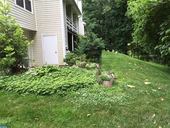 Remodeled lower level flat with spectacular garden area. Enter into foyer and large living/dining combination with laminate wood flooring and fireplace. Newer windows. Eat in kitchen. 2nd bedroom and bath. Master suite is largest of all models in Darlington Woods. Put your office or seating area in your master suite with connected private bath. Fee includes landscaping, snow, trash, maintenance, pool, tennis and clubhouse. Garnet Valley School District. Private location; look for 67 Bayberry, walk down stairs and it is one floor living.