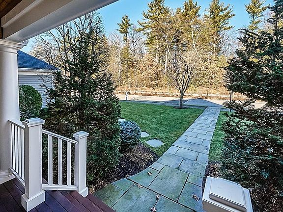 Beautifully sited on over an acre of land with pond view, this 5/6 bed completely re-done colonial offers easy family living in a premier estate location in a cul-de-sac. Walking distance to Wellesley center and the ‘T’ this meticulously maintained property is designer quality throughout with a welcoming large sitting front porch portico. Stunning entry way leads to an open phenomenal high ceiling hallway , to a marble fireplace and light-filled kitchen w/ breakfast nook and step-down family room. Gracious living and dining rooms plus a full study complete the main floor with two modern powder rooms. Upstairs, the master suite features two large walk-in closets and a dressing and work-out larea, plus a beautiful and bright marble master bath. Also on the 2nd floor are 3 add'l full ensuite bedrooms plus office/study/extra bedroom area. Lower level includes guest bedroom with fireplace, two playroom/sitting areas, full bath and potential wine room with more storage area. Abutting conservation land and pond, the two-level manicured backyard is enhanced by beautiful, mature areas fringed by untouched forest. Professional landscaped bluestone and lighting highlight 3-car side-loading garage. Newly painted throughout and exterior.