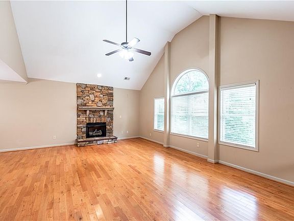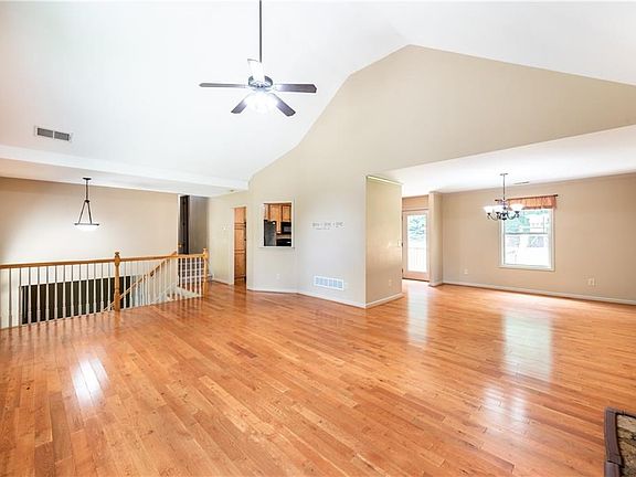 Large family home in conservation neighborhood with 24+ acres of dedicated green space and trails. This home is in excellent condition-new roof and HVAC is approx. 5 years old. Hardie Plank exterior, with covered front porch and deck overlooking large backyard, with sunny spots for garden. Lower level has large bonus space, plus a full bath, bedroom and laundry/mud room. Family room with big windows and vaulted ceilings on main level, with dining room and large kitchen. Master suite on upper level, with large bath; two more bedrooms and full bath on this level also.