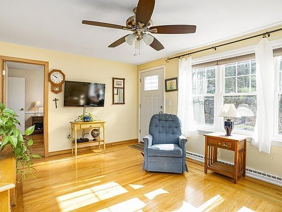 This beautiful and charming Ranch is positioned perfectly on this .41 acre parcel in a quiet North Seekonk neighborhood. The interior features spacious rooms and hardwoods throughout the family room and all bedrooms. The eat in kitchen is large with gas stove, lots of counter and cabinet storage and all kitchen appliances are included. Handicapped Accessible with full ramp, all one level living, flat thresholds and a newly remodeled and fully handicapped bathroom with extra wide shower and appropriately sized vanity and sink. Strong mechanical systems and structure! New roof just 3 years ago on main house and in 2019 on garage, most window replaced and converted to new natural gas heating system in 2013! Freshly painted interior and low maintenance vinyl siding on exterior. Partially finished lower level with play room, office and full bath with laundry and shower. Central air and storage shed! Two car garage and a beautiful level and private rear yard that overlooks a small pond!