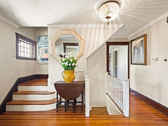 Impressive Philly style two-family home located in West Medford. This classic home is located steps away from the West Medford commuter rail, restaurants, bus lines, and schools. First floor boosts lots of sunshine a beautiful foyer, three bedrooms, living room, den, large eat-in kitchen with a full pantry. Hardwood floors through-out.Second floor offers a large foyer with hardwood floors and beautiful crown molding, living room, den, large eat in kitchen with full pantry. Second level boosts three bedrooms and a full bath.Walk-in attic and a crawl space for plenty of storage. Through this sprawling layout both units have direct access to a spacious full walk-out basement. A private backyard with TWO two car garages! The house is set back off the street allowing lots of privacy. A must see!
