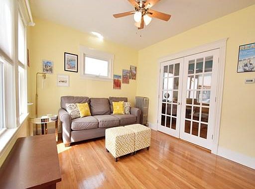 Incredible value in sought after JP location. This charming, sunlit parlor level flat has a flexible floor plan & is adjacent to green space & bike/walking paths along SW Corridor. Currently used as a 1 bedroom, the living room can be closed off by its French doors for use as a 2nd bedroom. Enter into the welcoming foyer featuring wainscoting & deep coat closet. The large open dining space flows into kitchen w/ shaker cabinetry & wide breakfast bar. The spacious master bedroom at the rear is a lovely retreat & has double custom closets. Enjoy the oversized common deck in the rear, great for entertaining or soaking in the rays. Plus laundry & exclusive storage & ample street parking. Equidistant by 0.5 to either Forest Hills or Green Street T stations, take your pick! Superb spot in JP, close to parks, community gardens, retail, restaurants, the new Happy Supermarket at top of the street, and the Arboretum. 100% owner occupied pet friendly building w/ a strong reserve.