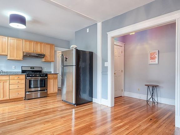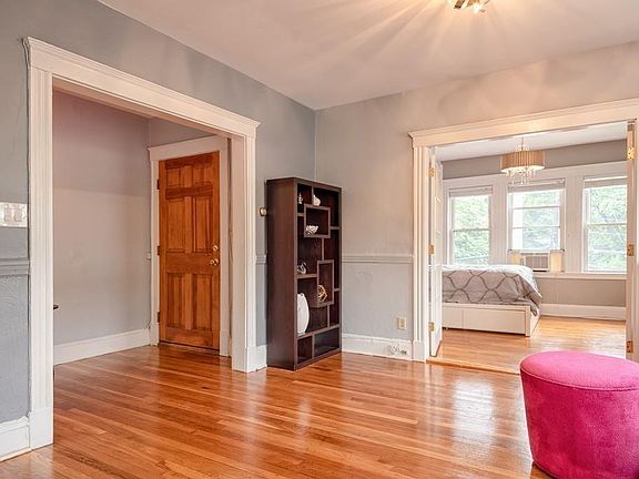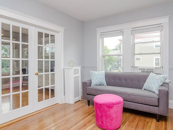 Sunlight abounds in this second floor 2 bed 1 bath w/ an open layout & flexible floorplan next to SW Corridor Park, moments to the Orange Line, Arnold Arboretum & JP Center. The entry foyer welcomes w/ a deep coat closet. The recently renovated eat-in kitchen has granite counters, SS appliances, a large pantry, & Shaker style cabinetry. The bathroom has modern vanity, cabinetry & classic hex tile floor. French doors lead to the front bedroom w/ newly added custom closet. The master bedroom is a private retreat at the rear, w/ a large double closet. Plus hardwood floors throughout, fresh paint & modern light fixtures. Two outdoor spaces - a front porch overlooking the park, & a large common deck where the association gathers for a summer party every year. All in a 100% owner occupied, well managed association that welcomes pets! Shared laundry & private storage in basement, ample street parking, & 1/2 mile journey to the train station along the pretty, verdant trail lined SW Corridor.