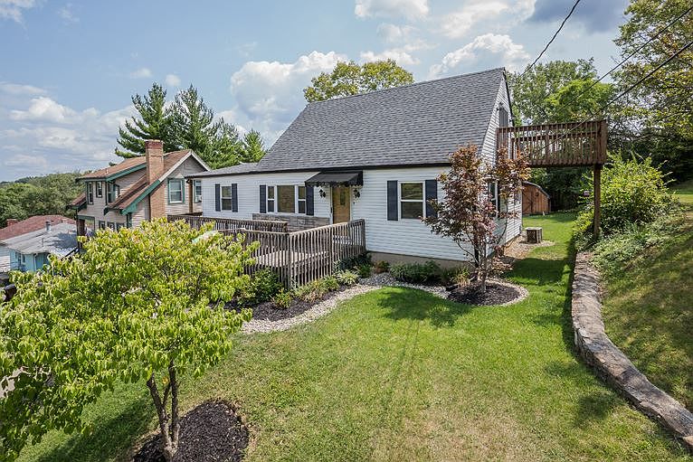 Charming home that has been lovingly maintained! So much to love- LARGE flat backyard w/shed*oversized attached garage w/double-wide driveway*1st flr bedroom plus 2 spacious bedrooms on 2nd flr*large bathroom w/Jacuzzi tub*living room w/vaulted ceiling & walk-out to large patio w/retractable awning*finished lower level* newer windows, roof, HWH, siding & gutters! Better hurry! Verify Schools