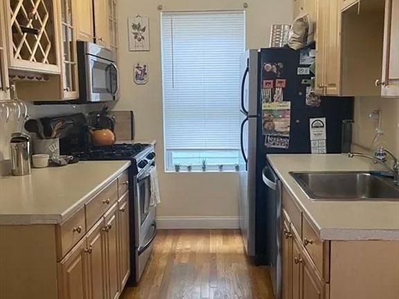 only steps away from the Green Station T on the orange line. This three bed one bath unit features central heat/ac, laundry in unit, kitchen with dishwasher wash and garbage disposal