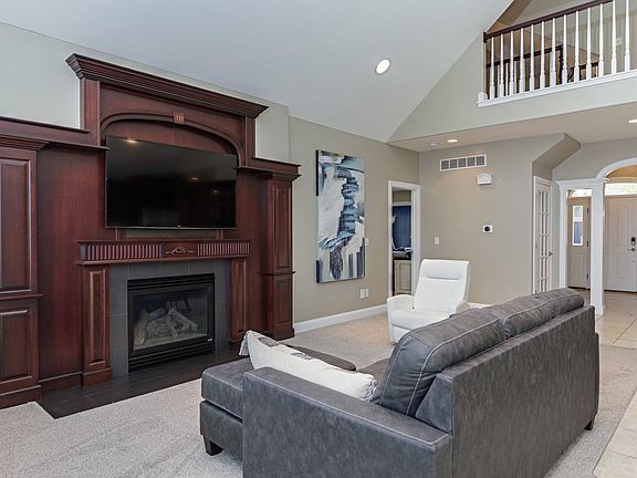 Custom Built home with 5 Bedrooms, 5 baths, & 5 car heated garage, by Knapp Builders. Corner lot with fenced backyard and landscaping. Gently lived in! Over 2000 Sq. Ft on Main floor with 1st floor master, office with vaulted ceilings and formal dining room. Spacious open kitchen and great room for entertaining with custom fireplace surround. 1st floor office with French doors. Master bedroom with separate make-up area and walk in closet with additional stackable washer/dryer hook-ups in closet. Master bathroom with custom tiled 8 ft. walk in shower, jacuzzi tub, built-in cabinets and soft-close drawers. New quartz counters added in master bath in 2021. Two suites on 2nd floor separated by a catwalk. Open Lower level with finished family room, kitchen, 2 more bedrooms, bath, exercise/toy room and a hobby room. Extra stairway from garage to basement. Large storage room with shelving. Plantation shutters on all 3 levels. Newer carpet, paint and trim. Main floor laundry room with additional shower, sink, and additional cabinets for extra pantry items. Extra unfinished space above garage that can be finished too. Central Vac. Aggregate patio 29 x 16. 220 Electric service in garage. Nest doorbell, door lock and thermostat too. Almost 6000 Sq. Ft. Agent Interest.