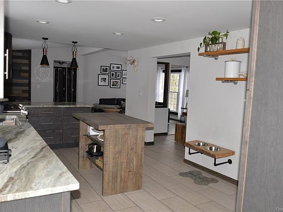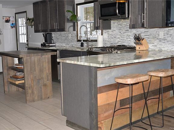 ABSOLUTELY "MINT!" is how you would describe this lovely, spacious 3 bedroom raised ranch perched on 2.11 private acres. This home has been completely renovated top to bottom! Nice open floor plan, spacious kitchen offers granite countertops, plenty of counter space, stainless appliances, peninsula, center island, all new lighting, living room w/woodstove, french doors leading to large outdoor deck, great place for entertaining or just relaxing to the sounds of nature, formal dining room, Master bedroom suite w/custom built closet doors, garden tub, renovated basement offers family room and bath, 2 car garage, oversized shed/workshop, great yard for kids and pets and super private! This home should definitely be on your list of "MUST SEES!"
