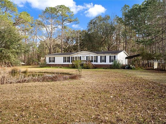 Drive up through your woods-lined driveway to peace and quiet out in the country that is still 20 min. convenient to Beaufort, 1 hour convenient to Charleston, minutes from access to I-95. Spacious mobile home on permanent brick foundation. Energy efficient HVAC new in July 2019. Dishwasher new 2018. Well was completely replaced 1.5 years ago. Washer and dryer and two full size refrigerators convey with the home. BCGOV flood maps, property in 'C' zone, typically no flood insurance required. Being sold as-is.