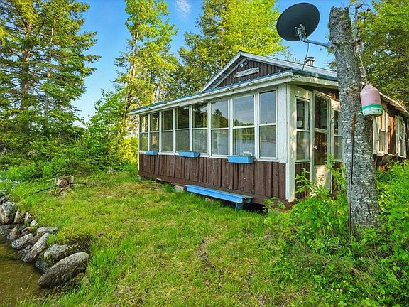 Escape to the peaceful shores of Caribou Pond with this cozy, seasonal cottage sitting right at the water's edge. With vertical log siding and classic Maine charm, this one-room getaway is the perfect spot to unplug and unwind. The interior features a spacious open layout with a wood stove to keep things toasty on chilly evenings. A glassed-in porch offers panoramic views of the pond—ideal for morning coffee, reading a book, or simply soaking in the serenity of the water. Caribou Pond connects to both Egg Pond and Long Pond, offering miles of water to explore by kayak, canoe, or boat. These waters are known for great fishing and calm, scenic paddling routes. Whether you're casting a line or just enjoying the natural beauty, this location delivers. Your lakeside retreat awaits—simple, serene, and full of potential for memory-making.