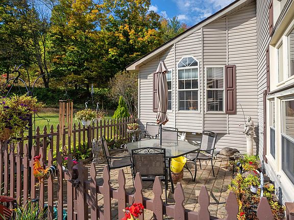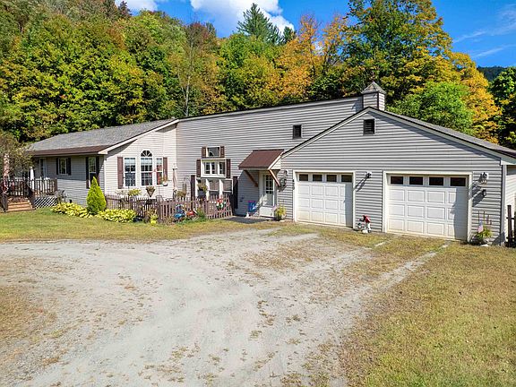 Just off scenic Route 100 on a sunny, level lot, this meticulously maintained home offers one-level living with an easy flowing floor plan, three bedrooms, including an expansive primary suite with walk-in shower and laundry, a sunny dining area overlooking the landscaped patio, and a well-designed kitchen with convenient center island, second prep sink, hardwood cabinets, updated countertops and abundant cabinet space. A full bathroom in the bedroom wing and a half bathroom in the front quarter ensure comfort for all your guests. The spacious family room with vaulted ceilings and rustic pine paneling, is an ideal place for entertaining and doubles as a mudroom, connecting the two-car garage to the main house. New luxury vinyl plank flooring graces the main living areas, gently vaulted ceilings create a vibrant and airy atmosphere and central air conditioning keeps this charming home comfortable all year long, while the backup generator ensures you'll never be without power. A multitude of additional spaces expand the living area and add functionality, including a heated workshop, storage room, attached garden shed, enclosed porch, sunny front deck and patio, private back deck and two storage sheds. For fun and relaxation, stroll out to the wooded camping grove where you can sing around the campfire, toast marshmallows, share stories and create lasting memories. Don't miss your opportunity to make this move-in ready home yours, call today.