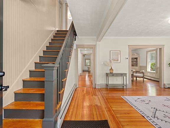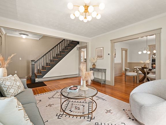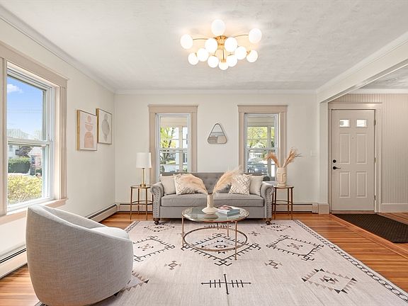 What an amazing refresh! BRAND NEW kitchen with a ton of white shaker cabinets - a coffee bar area - beautiful counter tops and the backsplash? It's LOVE! All hardwood floors recently redone. First floor has a brand new full bath with stackable laundry hook-ups. Large cathedral ceiling family room with a brick fireplace, huge closet and wood plank ceiling. Open concept living room and dining room complete the first floor. 2nd floor features a main bedroom with 2 large closets , a refreshed full bath and 2 other bedrooms. Outside we have a level fenced yard with 2 driveways and a one car garage! All this and just a stroll to the Wakefield commuter station (to Boston in 25 minutes) - 1/2 mile to everyone's favorite lake with baseball fields, pickleball and tennis courts, farmers market etc. Wakefield is in a super convenient location off Route 95 and is a very desirable community!