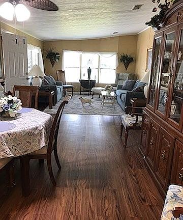 POOL HOME IN THE KNOLL!!! THIS VERY SPACIOUS MOBILE HOME ON OWNED LAND HAS SO MUCH TO OFFER STARTING WITH AN UPDATED KITCHEN WITH WOOD CABINETS AND SOLID SURFACE COUNTER TOPS, NEWER APPLIANCES AND LARGE WALK-IN PANTRY. THE LIVING AND DINING FLOORS HAVE BEEN UPDATED WITH BEAUTIFUL WOOD LAMINATE AND THE VERY SPACIOUS FAMILY ROOM (19 X 29) FLOORING WAS REPLACED WITH A VERY TASTEFUL NEUTRAL COLOR CARPET. ALL DONE IN THE PAST 3 YEARS PER OWNER. HOME ALSO FEATURES A LARGE MASTER SUITE WITH MIRRORED CLOSET DOORS ON EITHER SIDE AS YOU ENTER THE ROOM. THE CAGED SOLAR HEATED POOL IS SURROUNDED WITH VINYL FENCE FOR PRIVACY AND HAS A NICE COVERED AREA FOR OUTDOOR DINING AND ENTERTAINING INCLUDING A SHOWER/BATHROOM. EXTRA INSULATION WAS ADDED UNDERNEATH HOME ABOUT 3 YEARS AGO PER OWNER. THE LARGE BACK YARD IS ALSO FENCED FOR YOUR FURRY FRIEND! BEING SOLD AS IS WITH TIME FOR INSPECTION.