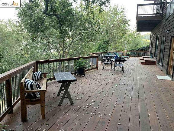 This beautiful multi-level modern-style home is surrounded by oak trees, has over 1k sq ft of redwood decking, potential au pair or in-law unit with separate entrance and stairs that lead to a large flat area that could developed for recreational fun. A terraced garden in the front of the home opens to another separate entrance into the laundry/play room. The master bedroom leads to the expansive decking in the backyard, and also includes a fireplace and a solarium. Morning sun shines through the many large windows throughout the home. The living room includes high ceilings, built-in library/bookshelf, wet bar and fireplace. There is a difference between measured and County square footage. The home was professionally measured in September 2020 at 3944 sq ft.