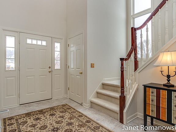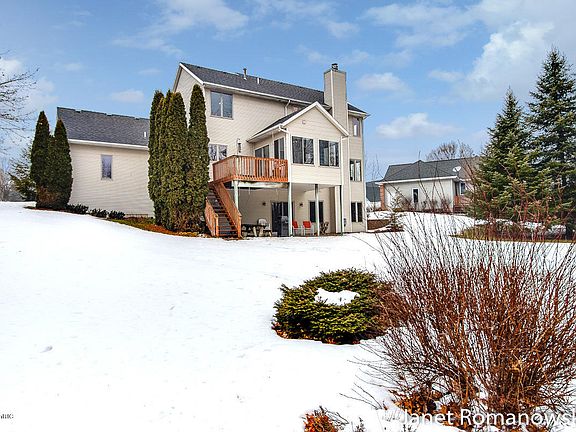 Do not miss this amazing opportunity to live on the Rogue River just a short walk to Downtown Rockford (by way of the Nature Park Walking Trail) within a newer subdivision of executive style homes. This two story walk-out offers an open floor plan that is great for entertaining groups of all sizes. The large spacious kitchen has all new stainless appliances & fixtures, a snack bar, eating area and a built-in desk leading to the great room with beautiful gas fireplace. Also impressive is the 3 season room to enjoy views of the river and wildlife that visit. The main floor also includes a formal dining room, large main floor laundry room, half-bath and loads of closet space. Upstairs offers a wide staircase, a soaring ceiling with expansive windows allowing for a lot of natural light,