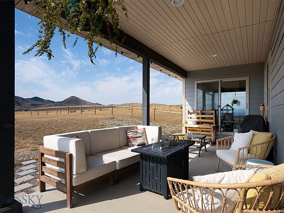 This better than new, 3 bedroom single level home, with an office, is available now! Perched on an elevated 1+ acre lot, this home has stunning panoramic mountain views with many upgrades throughout. The open floorplan features soaring ceilings and a spacious kitchen with plenty of cabinetry, pantry, island and nice appliances. With direct access off of the dining room, the large, covered back patio and fully fenced and cross fenced backyard is the ideal location for BBQs. The master suite features his and her walk-in closets and a generous ensuite bathroom with dual vanities. Two additional bedrooms share another full bathroom, and don't forget about the additional office space! The three car garage is massive and heated! Plenty of storage available for an RV, hobby trailers, and more! Central AC, smart thermostat, water softener, water filtration system at the refrigerator and kitchen sink, and radon mitigation are included! This home is located in a great neighborhood only minutes to Three Forks and 30 minutes to Bozeman. This home could be yours, so Make this your HOME SWEET MONTANA HOME today!
