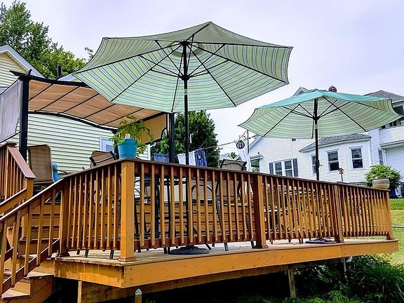 "Cute as a button" describes this well cared for bungalow home. First floor has a nice eat in kitchen, 1/2 bath with laundry, large living room. 2nd floor master bedroom with full bath. The back deck is a lovely place to hang out! 2 tiers and a hot tub!!