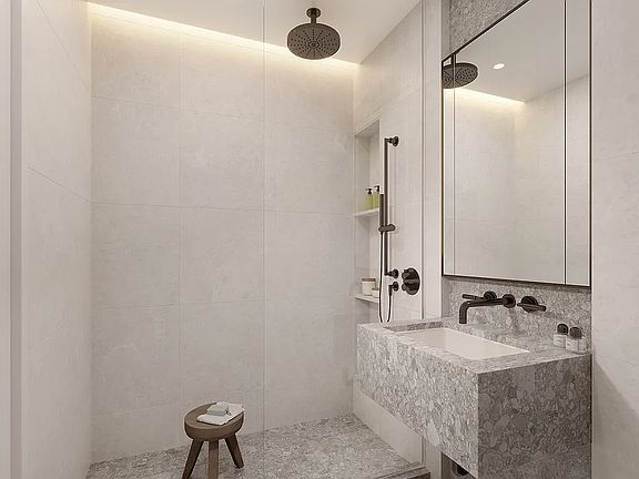 All showings are by appointment only. Expected Occupancy Winter 2023. Presenting residence 6B: a 975 SF 2 bedroom/home office and 2 bathroom residence designed by TalliTien. This residence features custom-stained flat cut white oak solid wood entry doors, cerused white oak hardwood floors with an HVAC heating and cooling system, and a Bosch Axxis Washer/Dryer Combination. A harmonious blend of form and function, each TALLITIEN designed kitchen is carefully considered with generous open plan layouts that seamlessly integrate the kitchen-living space. The heart of the home, the kitchen features a honed marble Didimon kitchen island, backsplash and countertop, custom-stained rift cut white oak cabinetry, matte dark bronze Graff fittings, state-of-the-art fully integrated Thermador and Wolf appliances, wine refrigerator, and bespoke detailing throughout. The primary bathroom has an extraordinary sense of calming sophisticated elegance designed with subtle restraint. Using simple materials, French vanilla honed white marble floor to ceiling walls surround a rare Dolce Vita quartzite floating vanity and floor with custom hardware fittings in a matte dark bronze finish. The secondary bathroom features floor to ceiling honed French vanilla walls and floors featuring a custom honed French vanilla mosaic designed by TALLITIEN surrounding the bath tub along with Graff fittings in a matte dark bronze finish. The customized powder room contains a honed full slab of Ceppo Di Gre custom stone vanity and feature wall along with honed French vanilla flooring and walls complemented by custom hardware fittings in matte dark bronze finish.Setting the benchmark for excellence, 66 Clinton is a collection of 12 curated residences with a keen attention to detail, intelligently designed for a distinct living experience. The amenities at 66 Clinton are designed as an extension of your home. Embedded with a level of privacy and intimacy, the zen garden oasis accommodates outdoor entertaining and social engagement. Fit for daily needs, the library lounge is curated for communing, lounging, and conversation. It is composed of three areas laced with custom millwork, undulating steps, and vibrant landscaping that opens to the garden. Designed for a private experience, the fitness center features top-of-the-line cardio and conditioning equipment, this soothing space is the perfect setting for personal training sessions.66 Clinton is more than a place of residence; it is a tailored home with an unmatched undercurrent of bespoke intimacy. It is a new way of living. Inspired by Nordic design principles, 66 Clinton celebrates the history of the Lower East Side, and introduces new elements that lend to simplicity, functionality, and restraint. The complete offering terms are in an offering plan available from the Sponsor. File No. CD 210087. 66 Clinton Holdings LLC, 170 East 118th Street New York, New York,10035. All dimensions are approximate and subject to construction variances. Plans, layouts, and dimensions may contain minor variations from floor to floor. Sponsor reserves the right to make changes in accordance with the terms of the offering plan. Equal housing opportunity.