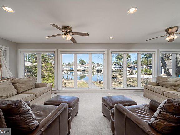 Youre sure to fall in love again and again with this beautiful waterfront property located in the highly sought-after Teal Bay Community in Ocean Pines. This spacious, 4-bedroom, 3.5-bath home will charm you at every turn. Enjoy the view of the water from inside the home through a stunning wall of windows or from the spacious rooftop deck--or from the extensive brick patio outside. The main living room area has an added feeling of spaciousness and light due to the cathedral ceiling filled with skylights. A dual gas fireplace serves both the living room and the primary bedroom. The primary bedroom has French doors that open up to a water view and an attached luxurious bathroom with a soaking tub, shower, and walk-in closet. Another bedroom just off the main area also has its own attached bath. A third bedroom has French doors that open out to a small deck that also looks over the waterfront. A fourth bedroom over the garage has an attached half bathroom. The loft space upstairs is a perfect place for kids to enjoy games in the evenings while the adults sit by the fire downstairs. The kitchen has lots of cabinet space and an island with stools for quick breakfasts before heading out for a day on the water. The home has recessed lights throughout. A 6-foot dock can meet many of your boating needs. Schedule your showing today before this rare and charming home is Sold!