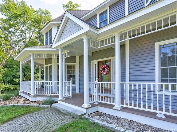 Privately set back and nestled on an open 2 acre lot is this impressive four bedroom 2 1/2 bath home. Set in a neighborhood of newer homes, this fabulous architecturally unique and impressive home has a marvelous, open concept floor plan. The huge chefs kitchen with an enormous island, has granite counters, built-in ovens, and a professional 5 burner gas cooktop. It leads into a lovely family room with a stone fireplace with built-ins and access to the expansive deck. The large living room and dining room are filled with light. There is also an impressive laundry room off the kitchen. An additional room off the foyer would make a perfect home office or library. Upstairs you will find a tremendous master en suite, complete with a fireplace, tray ceiling and a large beautiful master bath with soaking tub and walk-in shower. Upstairs there are also three additional good-sized bedrooms, one of which would make an amazing additional family room or media room. Outside there is an expensive wrap around front porch and a multi-tiered, beautiful deck out back with plenty of space for dining and relaxing. Additionally, there is an oversized THREE car garage, a paved driveway, beautiful hardwood floors, central air, central vac, surround sound, security system and generator hook-up that all enhance this property. Use of high-quality materials make this home a stunner Nothing to do here but move in
