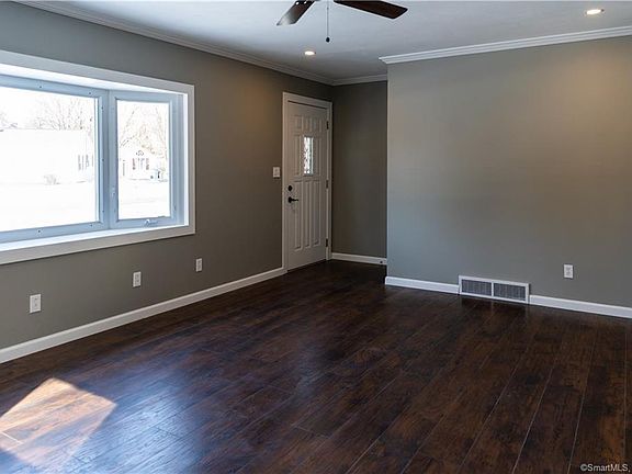 Light, bright, and freshly remodeled ranch in great Wallingford neighborhood Gorgeous kitchen with granite countertops, backsplash, brand new stainless steel Samsung appliances, soft close drawers and pullouts. Gleaming bathroom with marble tile and granite countertops. Recessed lighting, and brand new flooring and ceiling fans throughout. Bonuses include oversized garage with ample storage, great yard with back deck, all new exterior and garage doors, plumbed and ready for Central Air, newer hot water heater and more. Enjoy the perks of one level living in this stunning turn-key home