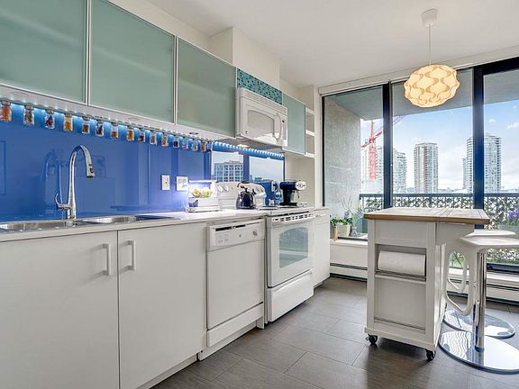 Welcome to 66 W Cordova by Westbank - a boutique building in the historic Gastown neighborhood. This sunny south facing 1 bed+1 bth home offers 524sqft of living space w a functional open floor plan, cheater en-suite bathroom, in-suite laundry & a spacious balcony overlooking beautiful Vancouver city views and Mount Baker. This concrete building features a well equipped gym, bike room, lounge area, large rooftop patio w BBQ & garden area w incredible water & city views. Bring your furry friends (2 cats / 2 dogs or 1 of each), rentals, & comes w 1 storage locker. No parking spot. Bonus - heat & hot water are included in maintenance fees. Incredible location steps to restaurants, shops, cafes, transit & everything Gastown has to offer. BY APPT OPEN HOUSE SAT 03/26 230-430 & SUN 03/27 12-2!