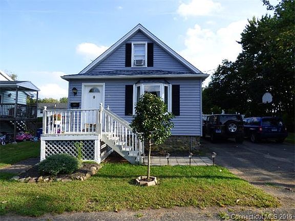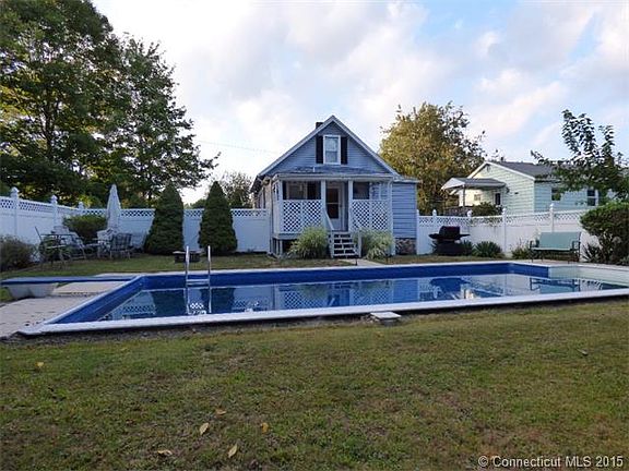 Freshly remodeled and updated Colonial with first floor bedroom. Generous sized living room with bay window opens to updated kitchen with tile floor, new cabinetry, and custom glass tile backsplash. First floor bedroom with hardwood flooring and walk-in closet. Second floor is used as Master Bedroom with Nursery with plenty of closets. Could be separated again to make 2 bedrooms or use as Master Bedroom Suite. Stunning 16x36 in-ground pool with granite walkway kept private with white vinyl fencing. New Liner. Pump and filter 2 years old. Plenty of mature landscape, plantings, and flower beds that are meticulously maintained. Covered rear deck overlooks pool and yard. Home boasts new roof, new vinyl siding, replacement windows, 100 amp service with breakers, city utilities.