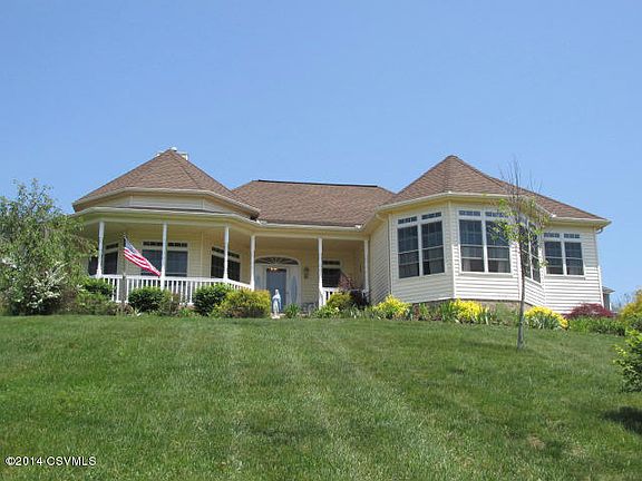 Enjoy beautiful views of the valley from the large wrap-around porch of this 3 bedroom, 2 bath ranch home located near Geisinger. This lovely home offers a spacious and bright living room with gas fireplace and 14' ceilings, formal dining room with doors leading to the covered porch, large kitchen with all appliances and a breakfast area. Master bedroom has a private full bath with whirlpool tub, separate shower and walk-in closet. The lower level offers 2,000 sq ft. of basement to be finished or just for storage. Agents this is a 10G property!!