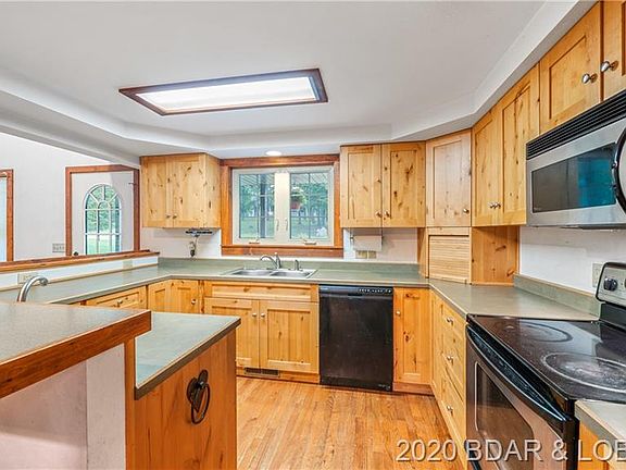 Beautiful country home near Lake of the Ozarks! Walking into this charming 3 bedroom, 2.5 bath home, you are greeted with an open living area with gorgeous floor to ceiling stone fireplace and spacious kitchen with plenty of room for the whole family. The main-level master suite incudes bathroom with double sinks and walk-in closet featuring built-in shelves. Loft overlooking living room provides extra space and leads into an additional family room. This family room (or potential 4th BEDROOM) with nearby half bathroom is an ideal area for spending time with family or a fantastic playroom for kids. Relax on the wrap around porch or entertain on the deck while enjoying views of the large, private yard. Rustic charm, ample space and a great location near town as well as the lake makes this home too good to pass up! Schedule your private showing today!