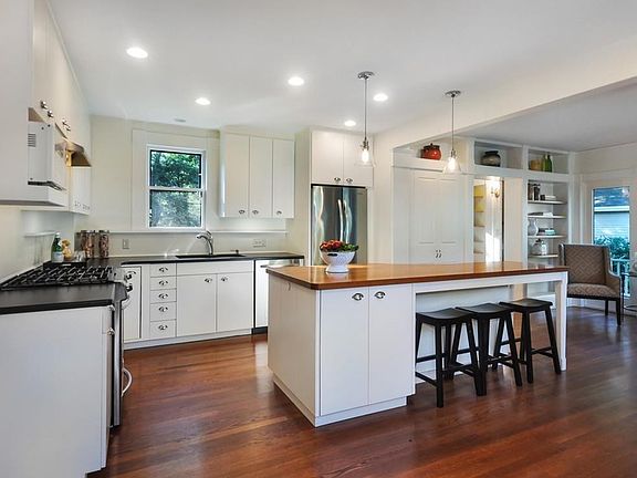 • Kit Dscrp: Flooring - Wood, Dining Area, Countertops - Stone/Granite/Solid, Kitchen Island, Stainless Steel Appliances, Remodeled, Gas Stove