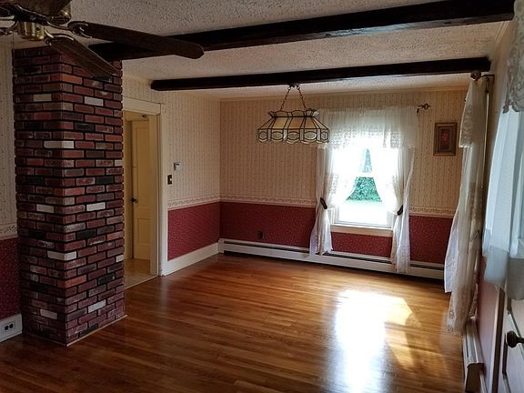 Cute Cape that was a long time family home is now waiting for you to make it your own. This home has 4 bedrooms, 2 baths, and plenty of space for your growing family. The mudroom and 3 season porch will help keep the shoes and coats out of sight. 1st floor Master has a oversize full bath with laundry hookups (no going to the basement with baskets!!). The large kitchen could have a table, or use the dining room/living room combo instead. 3 bedrooms upstairs with a full bathroom. There is a nice and flat side yard that is mostly fenced in, and there are 2 separate garage/workshops for cars, tools, whatever! New gas line is large enough to allow you to switch over from oil if you desire. Heating system and water heater was replaced in 2008.