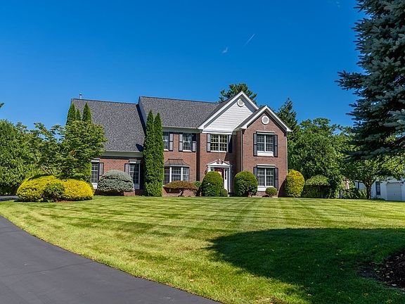 Prominently sited on an acre lot in a wonderful neighborhood, this beautiful brick front colonial has been impeccably cared for by its original owner and is a seamless combination of elegance, warmth & upscale finishes. With many updates inc. new roof, furnace, A/C, gutters, refrigerator, dishwasher & more (see list of updates), you’ll find comfort & tranquility in this home abutting conservation land & sited close to the golf course. Enter into the inviting two-story foyer flanked by lovely living & dining rooms and follow the open floor plan to the Fam Rm and kitchen, featuring HW, FP, skylights, center island, granite, SS & eat in area leading to the newly stained deck & spacious backyard. The handsome office, laundry & half bath complete the main level. Ascend upstairs to the lovely primary ste w/ 2 walk-in closets, sitting area & full bath w/ 2 vanities, jacuzzi & tiled shower w/ new glass door&surround. Three add'l. generous BRs & full bath complete the upper level. A true gem!