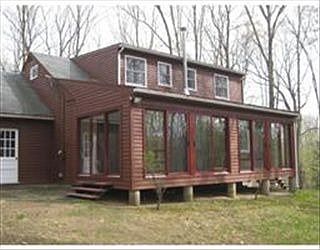 Spacious 4 bed,2 full bath cape on private picturesque lot with little brook though minutes to Amherst College,UMass and downtown Amherst.Enjoy nature from huge family room with woodstove and cathedral ceiling. Updated eat-in kitchen,formal dining room,capacious living room with HW floors and fireplace.Two first floor good-size bedrooms and bath.Second floor features 2 large bedrooms and full bathroom. Finish walk-out basement with sliders,fire-place and tons of storage space and make it yours!