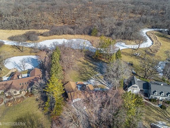 Tucked away on a peaceful cul-de-sac, this mid-century modern ranch is a private retreat where nature takes center stage. With Flint Creek meandering through the rear portion of this 1.7 acre lot and serene Grassy Lake Preserve just beyond, the setting is nothing short of spectacular. Step inside, and you're immediately greeted by walls of windows that frame breathtaking views of the lush landscape, mature trees, and shimmering water. The crescent-shaped living and dining area is a showstopper, featuring a wood-burning fireplace and three walls of glass that seamlessly blend indoor and outdoor living. The kitchen makes a statement of its own, curving elegantly around the living space with granite counters, a pantry closet, and a bright breakfast nook with sliders leading to the deck-perfect for morning coffee with a view. Nearby, the vaulted family room offers triple sliding doors that open to the backyard, inviting in the fresh air and natural beauty. The primary suite is complete with an ensuite bath, two walk-in closets, and private access to a screened porch-an ideal spot to unwind. Two additional bedrooms share a well-appointed hall bath, while a powder room and laundry room complete the main level. Outside, the expansive deck and sprawling lawn set the stage for endless relaxation, play, and entertaining-whether it's sunny afternoons, peaceful evenings, or stargazing under moonlit skies. All of this, just minutes from award-winning D220 schools, shopping, dining, town, and train. This is a rare gem waiting to be discovered. Estate sale - property conveyed AS-IS.