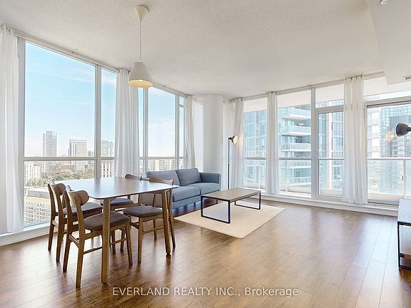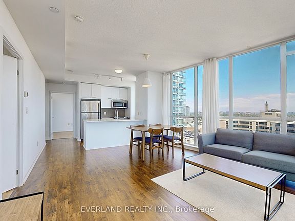 Welcome to this Spacious Southeast facing Corner Unit at Emerald City . Functional Layout with Lots of Sunshine, Open-concept living area, walk out to a generously sized balcony. Split bedroom, Laminate floor throughout, Floor-to-ceiling windows, Well equipped kitchen with full-sized stainless steel appliances, stone counter & breakfast bar. Excellent Amenities Include: 24 Hr Concierge, Gym, Indoor Pool, Hot Tub, Outdoor Terrace with Lounge & BBQ area, Party Room, Library, Theatre, Games Room, Guest Suites, Visitor Parking. Steps To Don Mills Subway And Fairview Mall,Close To 401 & 404 Highway.