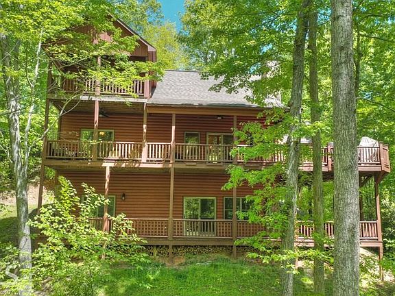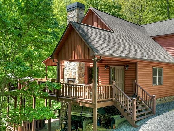 Leave the world behind... This luxurious cabin in the mountains is privately situated on a 1.81 acre lot nestled in the tree tops and located in the heart of the Aska Adventure area. This 3 BR/3 BATH lodge offers an open floor plan with cathedral ceilings, stacked stone fireplace, granite countertops with room for 4 barstools at the bar, stainless-steel appliances, beautiful hardwood floors, plus a loft area with extra sitting space and a bedroom/full bath. The lower level boasts a spacious den area that could be used as an extra living area/game room/media room plus a bedroom/full bath. Gather with friends and family around the exterior fireplace and enjoy your two levels of spacious decks. Whether you are considering full or part-time, this is the perfect mountain retreat. Welcome to the mountains!