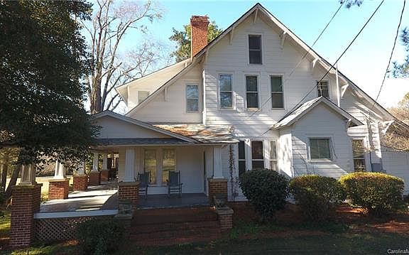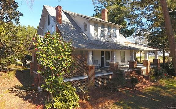 A 1921 WELL MAINTAINED & CHARMING HOME ON 3.7 ACRES in Ansonville, NC. Rocking on the wrap around porch is relaxing but inside there's so much to see! Large entry with hardwood floors, columns & and grand staircase. The large living room with fireplace, huge windows, high ceilings is open to a large dining room with brick fireplace. Just to the right of the front door there's a music room, den, office. This Country Kitchen is ready for a cook! Wooden walls, dishwasher, stainless sink, plenty of counter space, cabinets & very large pantry! Main floor is 1,824 sf plus a closed in back porch/utility room. Delightful upstairs landing with 3 bedrooms, walk-in closets, bath & storage room. City water, septic system & Heat pump all currently working. So, you can live here comfortably while you are working on any changes. 3 car garage plus an enclosed shop. Pines in the backyard provide 600-700' of privacy. Grocery Store in Norwood NC 52 N or Wadesboro 52 S (12 minutes)