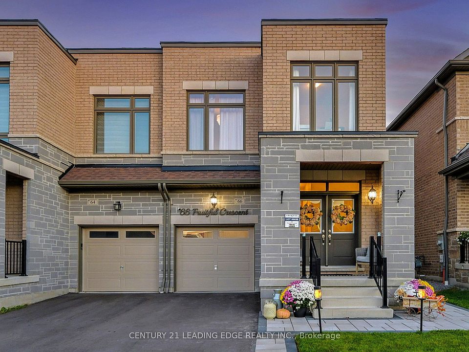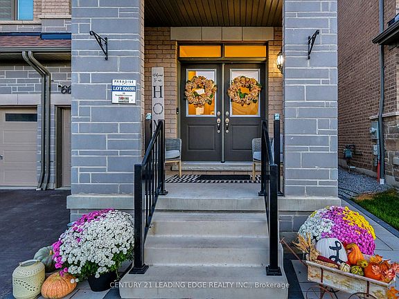 Welcome to 66 Fruitful Crescent - Where Luxury Meets Lifestyle! Step into sophistication at this exquisitely upgraded semi-detached masterpiece by Paradise Developments. Nestled in one of the area's most sought-after new communities, this sun-drenched 4-bedroom, 3-bath residence is the epitome of refined suburban living. From the moment you enter, you're greeted by 10-foot ceilings, designer light fixtures and rich hardwood floors that flow seamlessly throughout the main level. The heart of the home, you may ask? A show-stopping chef's kitchen featuring gleaming granite countertops, premium stainless steel appliances and an oversized island perfect for entertaining in style. The elegant living room, anchored by a statement fireplace, invites cozy evenings and elevated gatherings. Upstairs, discover four spacious bedrooms, each with their own closets and two spa-inspired bathrooms that exude comfort and class. The fully finished basement is an entertainer's dream - complete with a chic custom bar, versatile recreational/lounge space, a separate room perfect for a home office and generous storage options. Upgrades include: Finished Basement, Front/Backyard Interlocking and Fence (1 year) Upgraded Kitchen, Backsplash, Upper Ceilings Cabinets, B/I mudroom Cabinets, Moulding, Upgraded Flooring, Pebble Floor in Primary Shower (3 years), Outside, your private yard awaits - offering the perfect backdrop for summer soirées or serene mornings. A private garage and extended driveway accommodate up to three vehicles, effortlessly blending practicality with prestige. Ideally located near lush parks, splash pads, schools and premier shopping, with quick access to Highways 401, 407, and 412, this home offers the perfect blend of luxury and convenience.