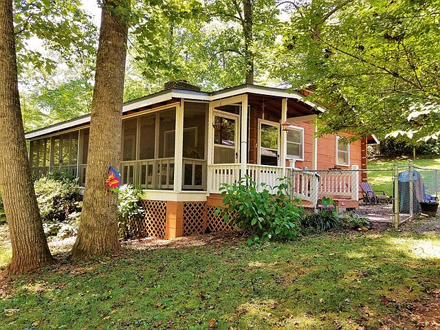 A sweet little cabin in desirable Clarks Chapel! This 2 BR, 1 1/2 BA log home is perfect for year round living or a vacation getaway. Tucked into a small, wooded, quiet neighborhood with a mostly level, usable yard, this great little place is sure to please! Inside is a great mix of charming exposed wood walls and hardwood floors to give it that cozy cabin feel. The spacious eat-in kitchen and living room are separated by a lovely brick fireplace that features a wood stove, but can be converted to gas if you prefer. The master is a good size with it's own half bath and down the hall is the second bedroom and full bath. Laundry is in the hall too making this easy, one-level living. You'll love the 36' x 8' screened porch to enjoy the quiet mornings with coffee or relax in the evening with a glass of wine and the many shade trees will help keep you cool. Outside features a storage shed, double detached metal carport, fenced yard for kids or pets and there's plenty of room for a garden. Some furnishings negotiable. Affordable mountain living with easy access - come take a look!