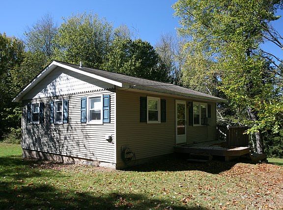 Less is more: This 700-sf ranch in Callicoon's desirable Beechwoods sits on a nice 1.3-acre corner lot in a pleasant, quiet neighborhood. The land is level, sunny and surrounded by mature trees for privacy. There is an easy flow among the single-floor rooms: kitchen, dining area, living room, bedroom and full bath. Downstairs, the basement has two more partially finished rooms, with sheetrock over stud walls. Wiring has been run in downstairs walls but not finished. Recent improvements include thermal windows, well, septic, and roof. Located 5 minutes from Callicoon and the Delaware River.