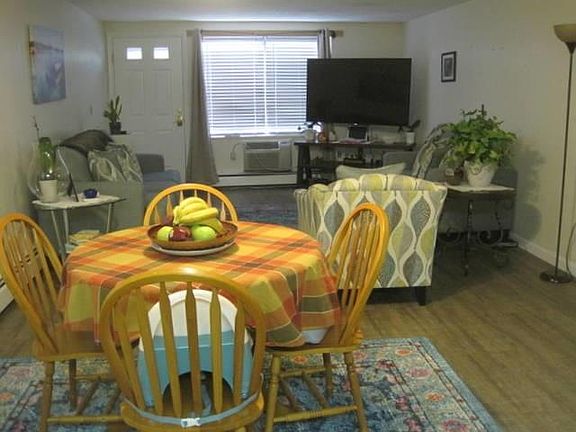 One Level condo has open floor plan, two large bedrooms, 2 full bathrooms and laundry/storage room. Plenty of closet space throughout. Newer appliances and updated wood flooring. Close to bridge, Navy Base, CCRI and bus lines. Tenant in place until December 31, 2019. Furnishings also available for sale.