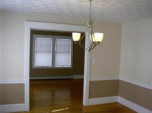 First Floor - Mint condition 2 bedroom apt. in quiet residential neighborhood next to Moulton Park. This apt. is freshly painted, has new state of the art heating and HW systems, updated replacement windows, hardwood floors throughout, updated kitchen w/pantry, basemednt storage, and 1 car garage parking + 1 additional parking spot. This apt. has been meticulously maintained and is in move in condition. Close to Boston commuter rail, I93 and I95.