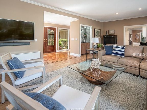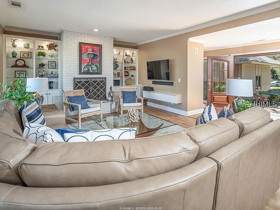 Simply charming! The curb appeal of this lovely home, beautifully landscaped, with a handsome front entry system, warmly invites you to take a closer look. Well designed 3 bedroom 3 bath home with views out to #17 of the Sea Pines Country Club course. Open living, kitchen and dining areas flow easily to a very large back deck. Newly remodeled kitchen and baths with great attention to detail. Large two car garage. Many closets for extra storage. Well loved and maintained.