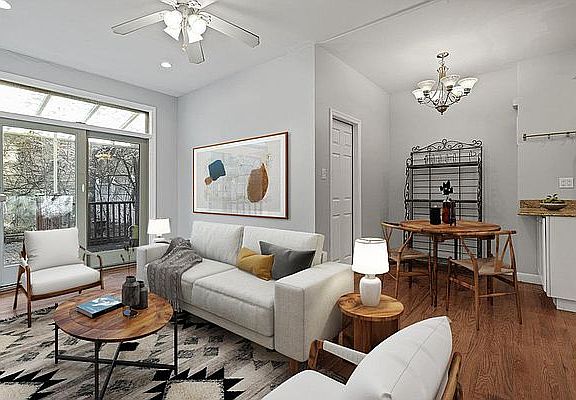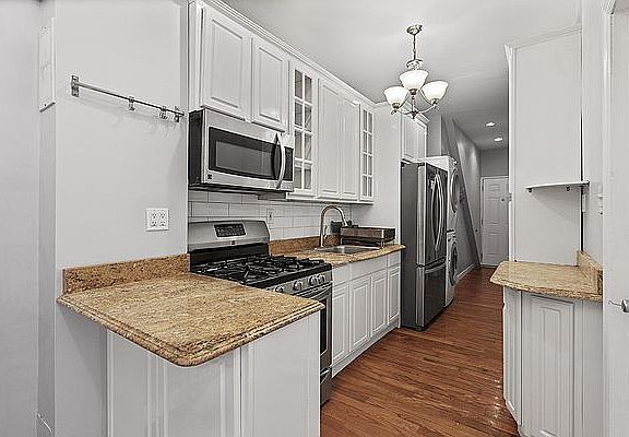 Step inside this beautiful and pet-friendly 3 bed, 1.5 bath Bushwick apartment for tall ceilings, hardwood floors, and many windows for fantastic natural light throughout! The full kitchen boasts granite counters, a subway tile backsplash, stainless steel appliances, and a built-in microwave. Other perks include big bedrooms and a spacious bathroom with a soaking tub. Downstairs, there's a finished basement with tile flooring and a half-bath for extra roomthe perfect hobby space or WFH nook. Air conditioning and a main floor stacked washer/dryer up the convenience factor. Outside, there's a shared fenced patio. Live in the heart of Brooklyn, on a tree-lined street offering picturesque brownstones close to vibrant nightlife, street art, and top dining options. This address has an 82 Walk Score and a 100 Transit Score! It's a two-minute walk to the Bushwick Ave / Aberdeen St stop for the L Line. Plus, it's only a 10-minute walk to J Line at Chauncey Street. Pick up groceries one block away at CTown Supermarket. Walk to several restaurants and bars, including Salud Bar & Grill, Father Knows Best, and Pita Point.