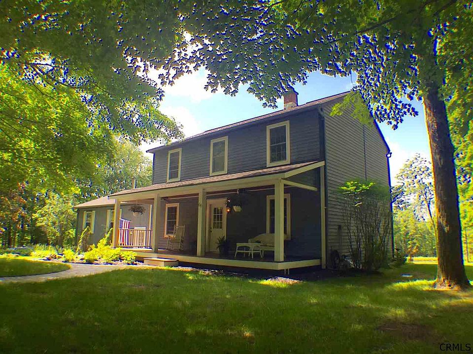 Set back off road, follow a circular drive to your own private retreat with 3 acres of cleared & treed land. Relax on the front porch, sit around the fire pit & enjoy a mountain view or fish the .75 acre stocked pond. Updates throughout include: new kitchen w granite & ss appliances, 1st flr bath w ceramic floor to ceiling tile shwr, engineered & plank flooring, windows, lighting, high efficiency boiler/hw tank, septic, well planned landscaping & stamped concrete path. Saratoga schools - 10 mins to town.